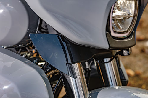 기존 울트라의 경우는 이 레그실드 안에 라디에이터를 숨겼다. 일반적인 상황에서는 상관이 없었지만 40도 이상의 고온의 환경에서는 매니폴드의 열기와 라디에이터 열기가 합쳐지며 오른쪽 발 주변에 뜨거운 열기가 집중되는 문제가 있었는데 신형은 라디에이터의 위치도 바뀌고 발 앞쪽 공간의 디자인을 개선해 열기 문제를 해결했다. 페어링 하단과 레그실드 안쪽에 위치한 디플렉터로 공기의 흐름을 조절할 수 있다. 살면서 40도 이상의 날씨에 주행할 일이 있을까 싶지만 우리나라에선 흔한 날씨는 아니지만 할리데이비슨의 고향인 미국에서는 의외로 흔한 일이다. 미국 투어 중 48도에 울트라 클래식을 탄 적이 있는데 오른발이 뜨거워서 레그실드 위에 얹고 탔던 기억이 있다.
