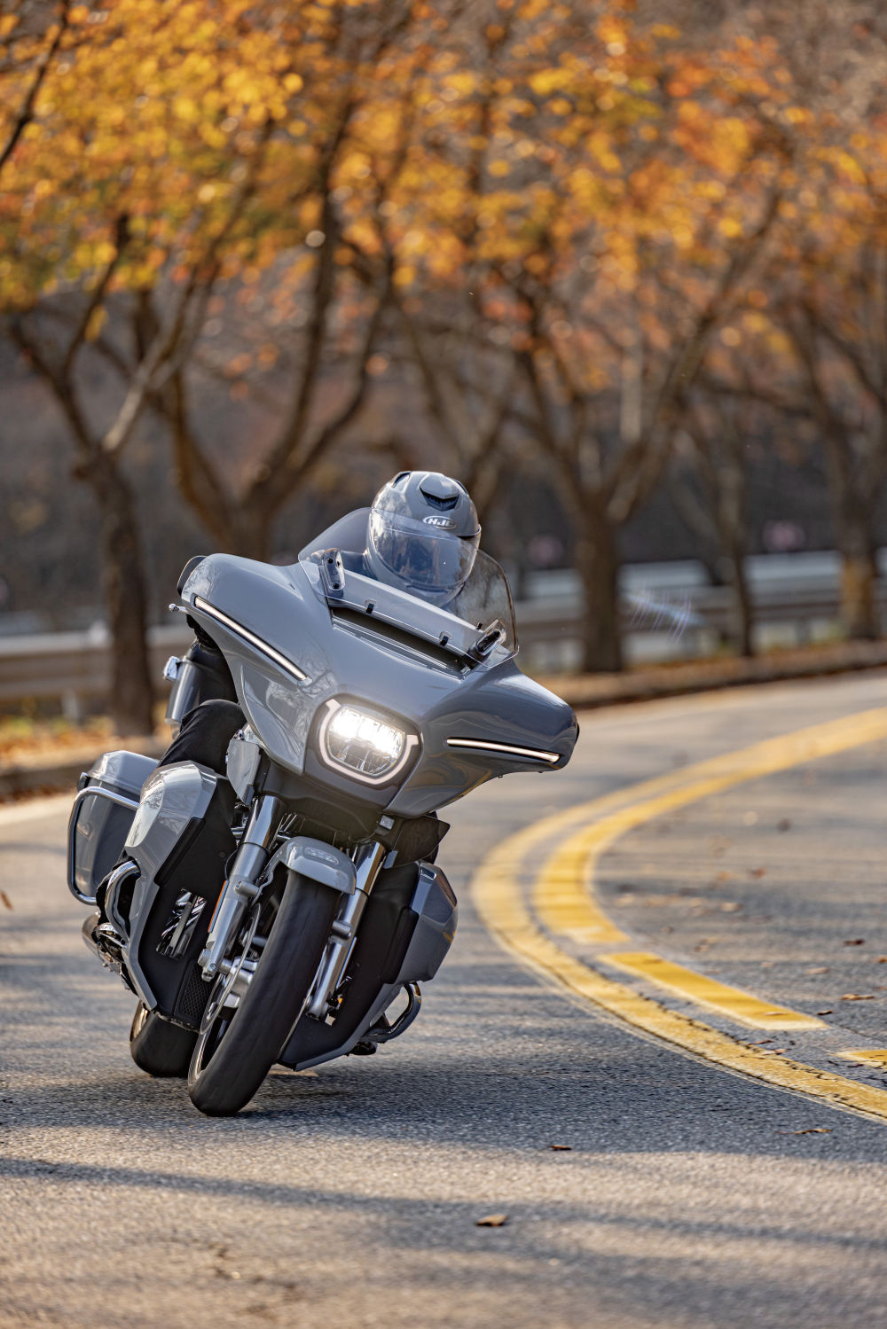 투어팩을 장착하며 무거워졌지만 신형 스트리트 글라이드보다도 안정감이 더 좋다. 무게 밸런스가 훨씬 좋다고 느껴지는 게 이상할 정도다. 예전에는 스트리트 글라이드가 운전자를 위한 바이크였고 울트라 리미티드는 동승자를 위한 바이크라고 설명했다. 하지만 신형 스트리트 글라이드 울트라는 운전자와 동승자 모두가 만족할만한 바이크다. 그러니까 이전의 울트라가 전국투어의 동반자로써는 최고의 선택지였음에도, 홀로 강원도 와인딩 투어를 가기에는 살짝 어색한 모델이었지만 이제는 다르다. 테스트 동안 와인딩을 일부러 찾아다닐 정도로 재밌게 탔다.