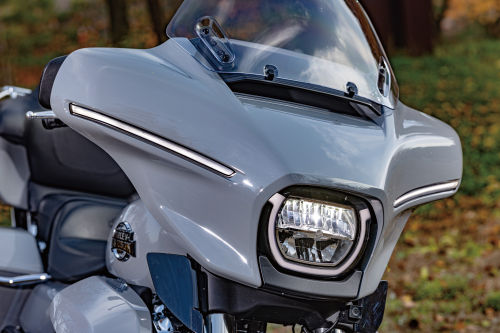 전체적인 실루엣은 할리데이비슨 고유의 배트윙 페어링의 형상을 바탕으로 라인들이 현대적으로 다듬어졌다. 전면의 긴 LED 라인이 주간 주행등 역할을 하면서 동시에 방향지시등으로도 사용된다. 존재감도 확실하면서 기능적으로도 뛰어난 디자인이다. 디자인의 기본은 스트리트 글라이드와 같지만 윈드 실드의 높이를 높이고 좌우에 스커트를 추가해 방풍성을 키웠다. 여기에 추가된 레그실드가 차량 전면의 디자인을 확실히 더 크게 보이게 만든다.
