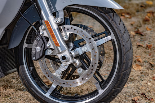 스트리트 글라이드 울트라의 차량중량은 393kg이다. 19인치 프런트, 18인치 리어 휠에 1,625mm의 휠베이스, 스펙만 늘어놓고 보면, 와인딩을 즐기기보다는 직선도로에 특화된 차처럼 느껴진다. 하지만 꼬불꼬불한 와인딩로드에 들어서는 순간, 이 거대한 투어러에 대한 선입견이 깨진다. 스트리트 글라이드 울트라는 방향 전환이 놀라울 만큼 가볍다. 사뿐사뿐 방향을 바꿀 뿐 아니라 라이더가 원하는 대로 라인을 그릴 수 있다. 풋보드가 긁힐 때까지 눕혀도 차체는 묵묵하게 라인을 따라 돈다. 비결은 서스펜션과 전체 밸런스다. 뒤에는 쇼와 에멀전 쇼크가 장착되고 프리로드 조절기구가 더해져 있다. 리어 프리로드 설정에 따라 차량의 움직임 차이가 크다. 프론트 포크 설정도 절묘해서 강한 제동과 동시에 코너로 진입해도 노즈 다이브가 과하지 않고, 프론트가 방향을 잡으면 리어가 부드럽게 따라오며 선회를 이어간다.
