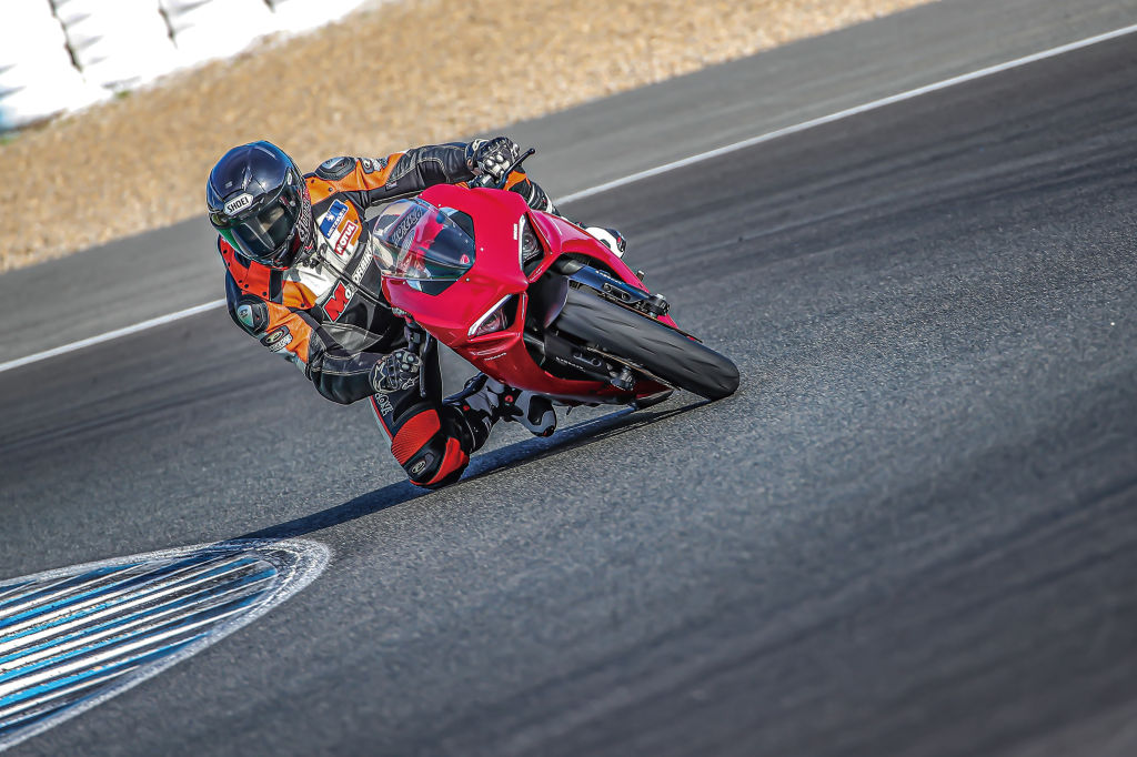 코스도 바이크도 몸에 완전히 익고 나서 레이스 모드로 바꾸었다. 더 활발해진 스로틀 반응이 느껴지고 전자 장비의 개입은 거의 느껴지지 않는다. 아니 ‘주행 중에 개입이 있었나?’라고 테스트를 마치고 주행을 복기해 보니 딱 한 번 13번 코너(로렌조 코너)에서 메인 스트레이트로 빠져나오며 풀 뱅킹 상태에서 직선로를 향해 스로틀을 전개할 때 램프가 깜빡임을 본 것이 기억하는 전부였다. 이처럼 실수로 한계를 넘으려 할 때 자연스럽게 그 실수를 커버해 주기 때문에 조금 더 과감하게 바이크를 다룰 수 있게 만들어준다. ABS는 물론 트랙션 컨트롤과 엔진 브레이크 컨트롤 등도 관성 측정 장치IMU 기반으로 바뀌었다. 이제 차량의 기울기와 움직임을 분석해 작동하고 특히 트랙션 컨트롤은 코너링 중에는 출력 조절이 더 섬세하게 제어되며 개입하는 순간 느껴지는 위화감이나 불안감이 확실히 덜하다.