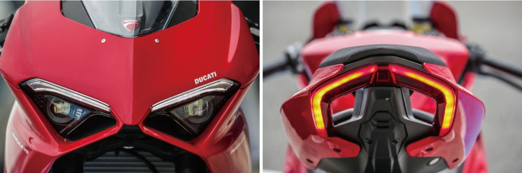 기본적인 차체의 구성은 959파니갈레와 거의 같다. 그래서 달라진 점을 먼저 살펴보자. 우선 외부 페어링 디자인을 V4 스타일로 바꾸었다. 날카로운 눈매의 헤드라이트와 두 개의 레이어로 입체적인 형상의 사이드 패널 등 디자인은 V4와 꼭 닮아있다.