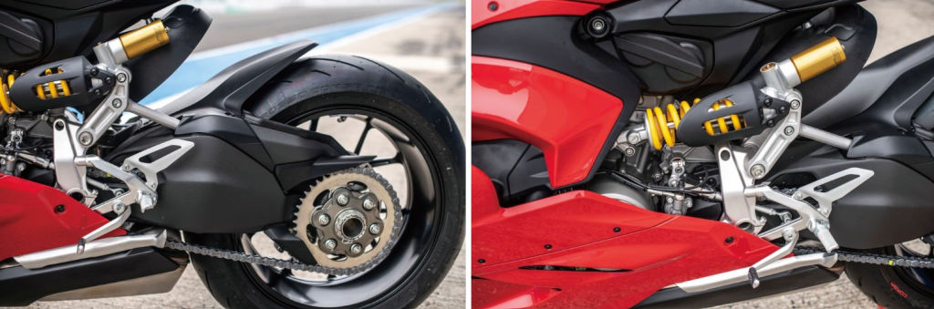 여기에 컴팩트한 사이즈의 배기 시스템과 고급 모델에만 쓰던 싱글 사이드 스윙암이 조합된다. 이게 스타일면에서 신의 한 수다. 뭐 그리 큰 차이인가 싶지만 파니갈레 V2를 보다가 959 파니갈레를 보면 둘의 간극이 확실히 느껴진다.
