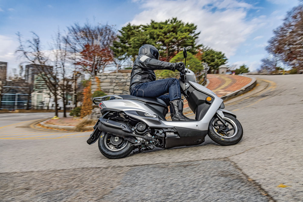 핸들링은 민첩하다. 휠베이스가 1,230mm에 불과한데다가 핸들각도 커서 회전반경이 상당히 작다. 좁은 골목길에서 한 번에 유턴이 될 정도다. 전후 휠 역시 10인치로 빠른 발놀림을 위한 설정이다. 저속에서의 움직임은 스포츠 스쿠터 못지 않은 경쾌함이 있다.