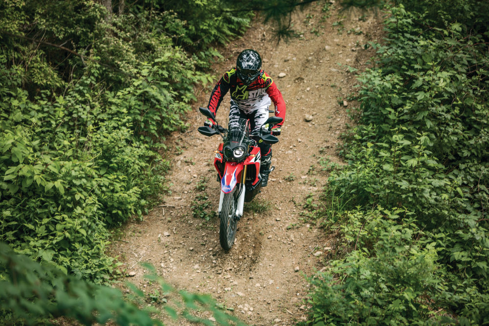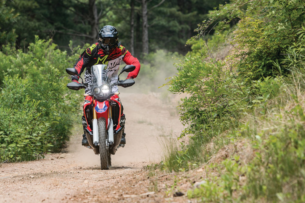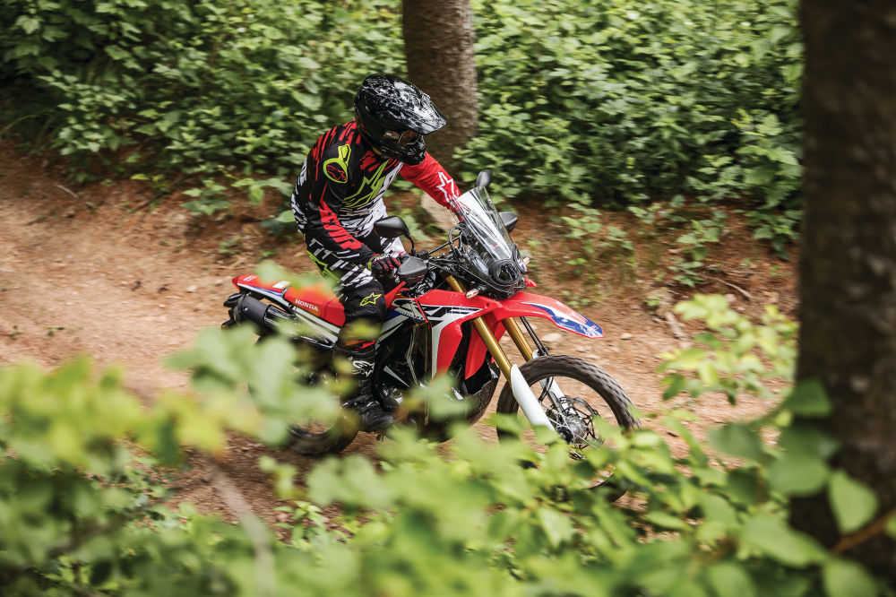 온로드와 오프로드 주행을 통틀어 가장 크게 감동한 부분은 서스펜션이다. 프런트와 리어 서스펜션 모두 기존의 CRF250L로부터 비약적으로 발전했다. 특히 오프로드에서 고속주행 시 순간순간 요철을 처리하는 능력도 좋으면서 댐핑이 허둥거림을 확실하게 잡아줘 안정적으로 노면을 박차며 달릴 수 있다. 서스펜션 트래블이 길어지며 확실히 여유로워졌다. 조금만 노면이 좋지 못해도 쉽게 한계가 와버리던 CRF250L에 비하면 큰 발전이다. 넉넉하게 받아주는 서스펜션 성능은 스로틀을 더욱 과감하게 열 수 있게 해준다.