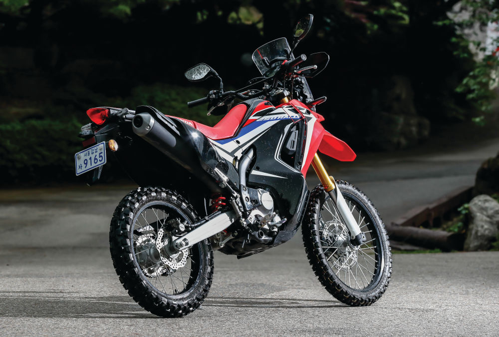 혼다의 CRF250랠리는 종래의 듀얼 스포트 모델인 CRF250L을 기반으로 다카르랠리 참전 머신인 CRF450 랠리 콘셉트를 더해 만들어진 랠리 스타일의 듀얼 스포트 모델이다. 2015년 도쿄모터사이클쇼에서 콘셉트로 공개되었던 CRF250랠리 콘셉트는 CRF450랠리를 그대로 복제한 듯한 외형으로 기대를 한없이 끌어올렸다. 과연 양산 모델에서 얼마나 콘셉트를 충실히 재현해 낼 수 있을지 걱정 반 기대 반이었다. 그리고 지난해 공개된 양산 모델은 그간의 기대에 충분히 부응하는 모습이었다. 아무리 봐도 250cc로는 보이지는 않을 만큼 풍부한 볼륨에 기다란 서스펜션, 팩토리팀의 워크스 머신과 유사한 데칼을 둘렀다. 당장이라도 랠리 경기에서 달릴 것 같은 본격적인 디자인은 랠리 머신에 대한 동경을 가지고 있는 라이더라면 그저 설렐 수밖에 없는 모습이다.
