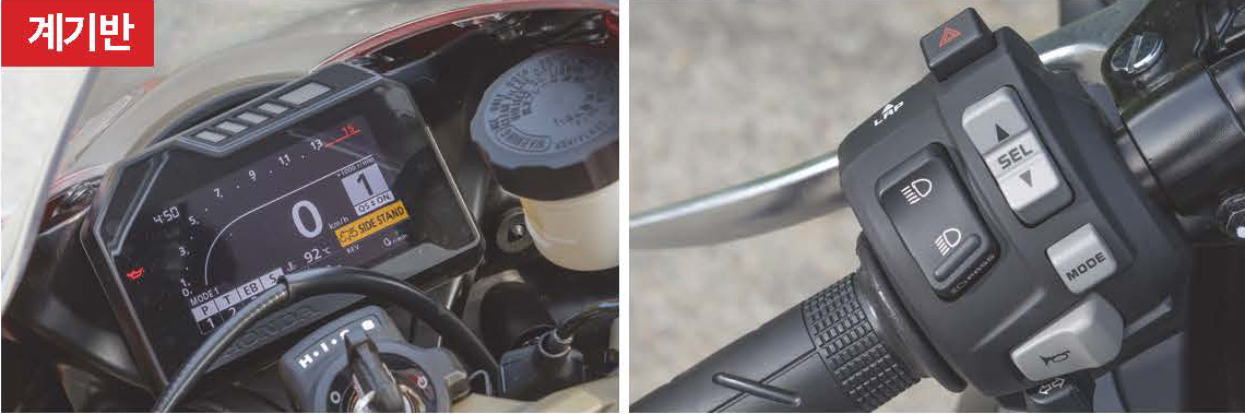 기본적으로 스로틀을 여는 만큼 바이크를 밀어주는 직설적인 피드백을 보여준다. 요즘의 대세에 따라 전자 제어 스로틀도 기본으로 탑재했다. 모토 GP 머신인 RC213V를 통해 숙성된 전자 제어 스로틀 시스템은 밀리미터 단위의 섬세한 움직임도 캐치한다. 이제 주행모드도 선택할 수 있다. 풀파워에서도 다루기가 쉬워 굳이 필요 없을 것 같지만 비 오는 날에는 꽤 유용했다.