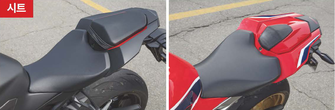혼다 모터사이클을 비롯한 일제 브랜드는 의외로 큰 덩치의 라이더를 고려하지 않는 경우가 많다. 지난 세대 CBR1000RR이 그랬다. 시트에 앉으면 포지션이 미묘하게 작게 느껴졌다. 이번에는 시트의 뒤편이 살짝 늘어나고 탱크 측면의 니그립 부위가 개선되어 덩치가 큰 라이더에게도 착 감기는 니그립을 선사한다. 바이크 자체는 여전히 상당히 콤팩트하다.