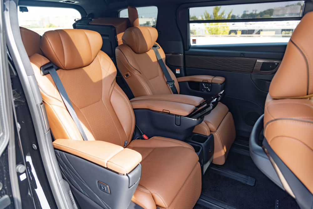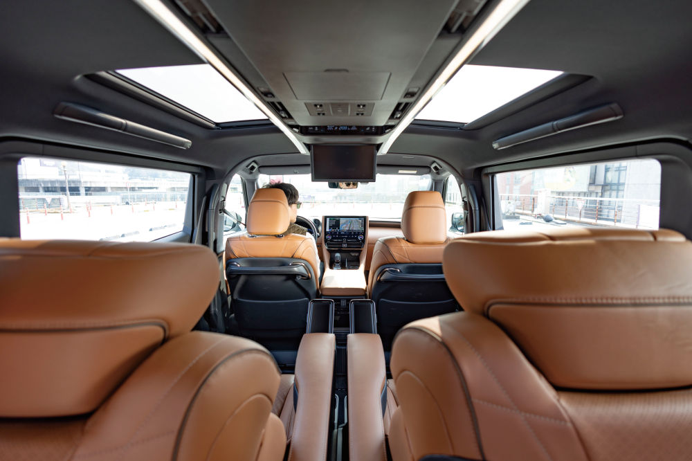 알파드는 6~7인승 구조에 최적화했다. 시트 배열은 2+2+2(혹은 3)로 3열 시트는 좌우로 5:5 방식으로 D 필러를 향해 좌우로 각각 접히는 방식이다. 그래서 3열을 접었을 때는 바닥 공간까지 활용해 큰 짐을 실을 수 있다. 신형은 차체 강성 강화에도 신경 썼다. 토요타 뉴 글로벌 아키텍처(TNGA)라는 플랫폼을 바탕으로 고강성 보디 프레임을 통해 비틀림 강성을 개선하여 주행 성능과 승차감 모두를 꾀했다는 게 토요타의 설명이다. 실내 공간은 1열과 2열의 용도가 확실히 나뉜다. 1열은 고급 세단처럼 안락함을 추구하면서도 운전자 중심이다. 운전석과 조수석 사이를 T자형 대시보드로 구분했다. 미니밴의 특징인 워크스루(좌우 시트 사이를 오가는 기능)는 불가능하지만, 중앙 디스플레이는 시인성에서 좋고, 깊은 센터 콘솔로 충분한 수납공간을 확보한다. 게다가 기어 레버를 비롯해 시트와 멀티미디어 조작 버튼을 효과적으로 정리하고 배치할 공간이 생겼다. 전체적으로 편의 장비는 ‘빵빵’하다.