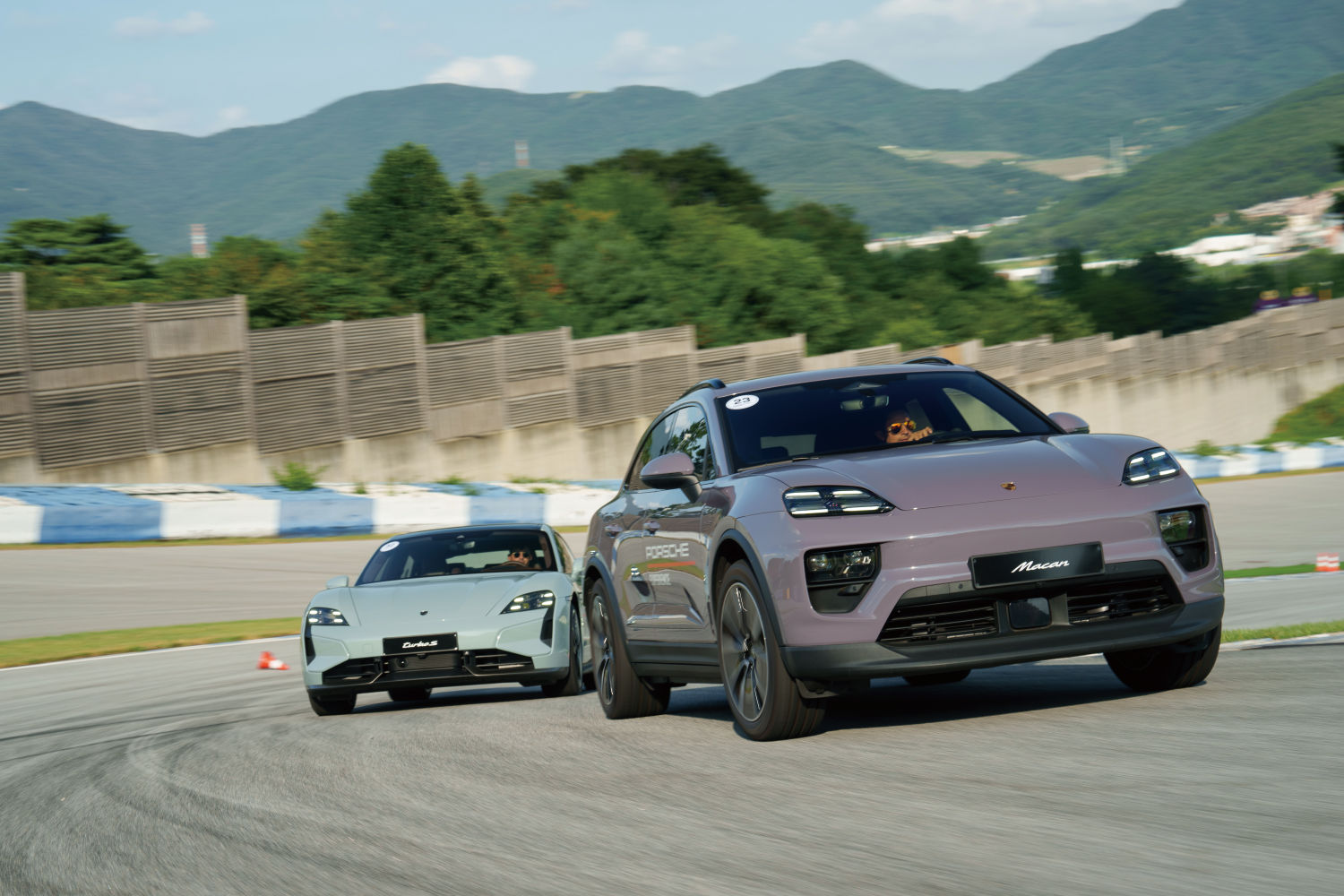 올 일렉트릭(EV) 핸들링 세션은 부분 변경으로 진화한 신형 타이칸 터보와 2세대 마칸 일렉트릭으로 라인업이 구성됐다. 신형 타이칸은 이전보다 더 높아진 출력으로 한층 빠르고 동시에 안정적인 코너링 감각을 발휘하는 것이 특징이다. 타이칸 터보의 경우 최고 출력 884마력(650kW)을 바탕으로 정지상태에서 시속 100km까지 가속하는데 2.7초가 걸린다. 반면 높아진 출력에 맞춰 조율된 섀시와 서스펜션 시스템으로 이전 타이칸과 비교해도 훨씬 안정적인 느낌이다. 실제로 빠르게 트랙을 달릴 때도 훨씬 쉽게 다룰 수 있다는 생각이다. 핸들링 섹션에 투입된 타이칸 터보 중 한 대가 포르쉐 액티브 라이드 서스펜션을 달고 있어서 비교도 가능했다. 포르쉐 액티브 라이드 서스펜션은 차체의 코너링이나 가속 및 감속 등 역동적인 움직임에도 차체를 수평으로 유지해 주는 기능이다. 부드러운 승차감과 함께 탑승자에게 가해지는 불쾌한 흔들림을 억제하는 것이 장점이다. 이 기능이 활성화된 상태에서 운전 감각은 약간 이질적이지만, 빠른 코너링이나 급 제동시 탑승자가 훨씬 편하게 차의 성능을 끌어낼 수 있다.