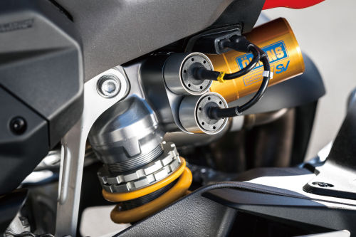 올린즈가 새롭게 선보인 스마트EC 3.0 서스펜션이 장착된다. 니들밸브에서 스풀밸브 방식으로 바뀌며 응답성이 빨라지고 댐핑 조절이 정확해졌다. 실시간으로 댐핑이 바뀌는 세미액티브 방식으로도 사용할 수 있으며 원하는 댐핑 값을 고정해서 사용할 수도 있다.