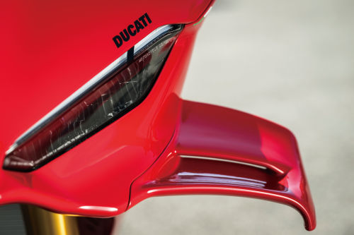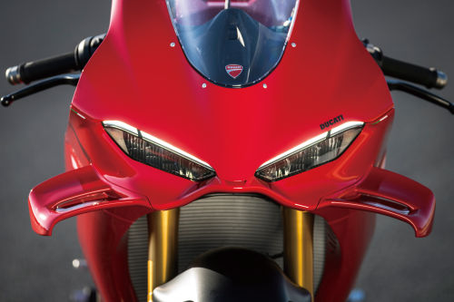 디자인은 신형 파니갈레의 핵심이다. 두카티 슈퍼바이크 중 여전히 최고의 디자인으로 손꼽히는 916과 1098의 디자인을 모티브로 삼고 최신 모토GP 스타일을 접목했다. 날카로운 눈매의 헤드라이트와 매끄러운 페어링 라인, 더 높아진 윈드스크린, 여기에 시각적으로 단숨에 시선을 사로잡는 ‘두카티 레드’ 컬러와 우아한 실루엣이 압권이다. 한층 미끈해진 디자인은 기계라는 느낌보다는 생명체처럼 느껴지게 만들며, 전면에서 바라보면 게임 디아블로가 떠오른다. 윙렛은 차체와 같은 색이 되고 앞쪽으로 옮겨지면서 차체의 일부처럼 느껴져서 존재감과 이질감이 모두 줄어들었다.