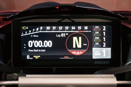 최신 바이크는 차체를 통제하는 전자장비가 점점 늘어나고 있다. 이를 더욱 효과적으로 제어하기 위해 새로운 두카티 비히클 옵저버 DVO를 개발했다. 기존의 IMU를 비롯해 70개 이상의 센서를 통해 얻어진 정보를 실시간으로 시뮬레이션한다. 마치 바이크가 생각하고 반응하는 듯한 제어 성능을 보여준다. 고속 주행 시 안정감은 물론, 코너링, 가감속에서도 라이더의 실력을 최대한 끌어올려준다. 이외에도 DTC(트랙션 컨트롤), DWC(윌리 컨트롤), DSC(슬라이드 컨트롤), DPL(출발 보조 시스템) 등 다양한 전자 제어 기능이 탑재되어 있으며, 각각의 설정은 라이딩 모드에 따라 정밀하게 조정 가능하다.