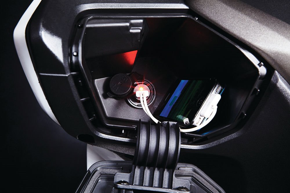 백 레스트가 적용된 시트와 편안한 포지션을 취할 수 있도록 고려된 풋 레스트는 장거리 주행을 고려한 요소다. 큼직한 윈드 스크린 역시 장거리 주행에서 주행풍을 효과적으로 걸러내줄 것으로 기대된다. 맥시 스쿠터의 넉넉한 여유 공간도 장점이다. 두 개의 글러브 박스는 핸들바 커버 하단 좌우에 위치하며 적절한 크기로 수납성이 기대되며, USB 파워 아웃렛이 있어 휴대기기 충전에 용이하다. 최근 휴대기기는 떼려야 뗄 수 없는 생활필수품이기에 USB 파워 아웃렛이 있다는 것만으로도 심리적인 안정이 된다.