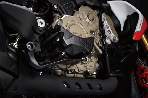 역시 RS 모델의 하이라이트는 엔진이다. 1,103cc V-형 4기통 엔진은 초중반의 매끄러운 필링과 데스모드로믹 기술에 의한 슈퍼바이크처럼 높은 엔진 한계 회전수가 특징이다. 이는 고성능 스프린트 필터 P08 에어 필터와 STM-에보 SBK 드라이 클러치, 전용 티타늄 배기 시스템 등을 통해 최고출력 182마력을 발휘한다. 이는 일반 디아벨 V4 모델 대비 14마력 높은 수치이며 rpm 레드존은 13,500rpm, 한계점은 14,000rpm으로 설정되어 있다.