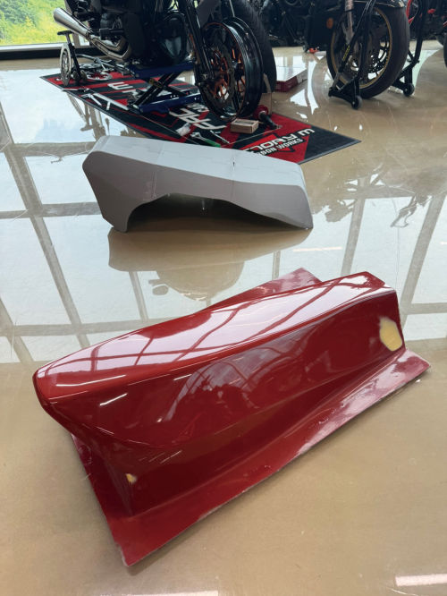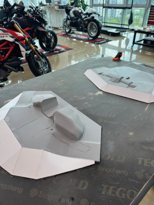 현재 우리 프로젝트의 페어링은 플렌지 작업을 진행중이다. 처음 계획보다 파트의 개수가 늘어난 상황이라 작업량도 함께 늘어나서 시간이 조금 더 걸리고 있다. 후처리 과정을 거쳐 카본으로 제작 될 졔정이다. 또한 레이싱 리버리 도색을 위한 그래픽 작업을 위한 시안을 준비하고 있다. 7월 안으로 주행 가능한 상태로 카본 페어링을 뽑는 것이 목표다.