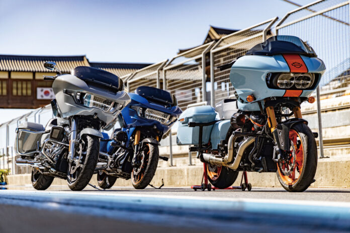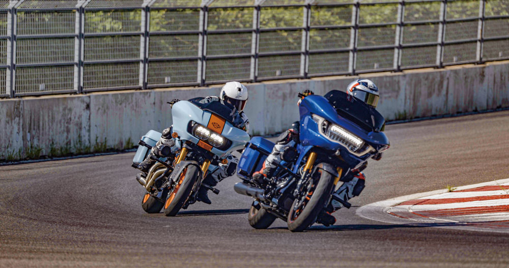 할리데이비슨의 대표적인 투어링 모델. 로드 글라이드 기본 모델부터 극한에 달한 레이싱 커스텀 모델까지, 레이스 트랙에서 테스트했다.