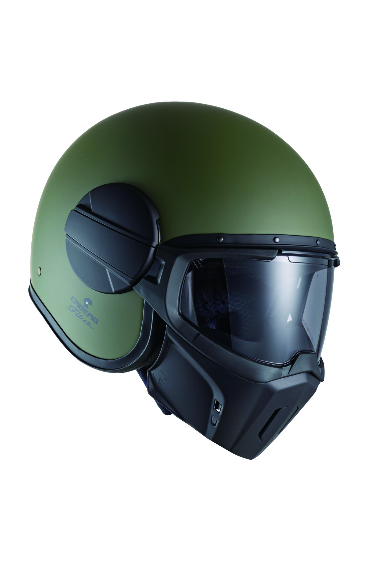 카베르그 고스트는 라이더의 취향에 따라 네 가지 스타일로 연출할 수 있는 헬멧으로 독특한 고글형 바이저 디자인이 특징이다. 파이버글라스와 케블라, 카본의 조합으로 만들어진 트라이컴포짓 소재로 가벼우면서도 높은 강성을 가졌다.