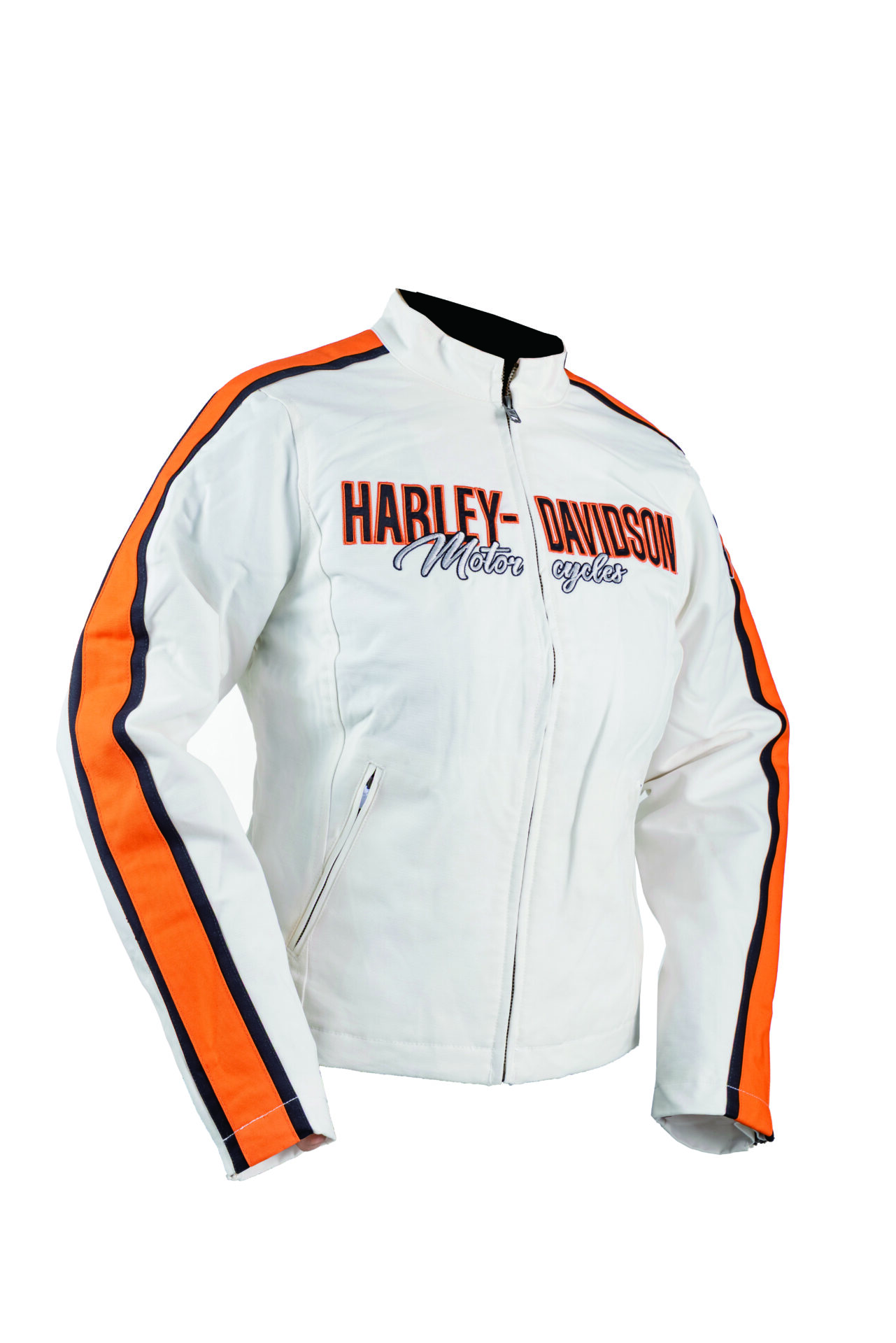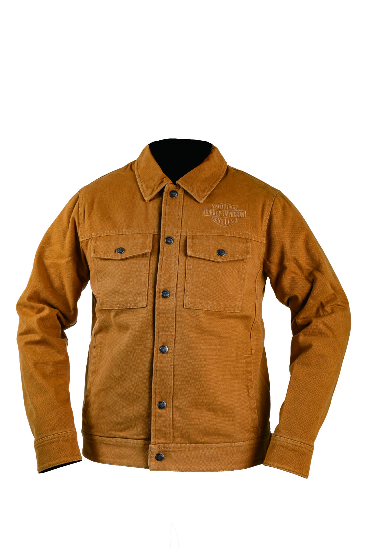 워크웨어 스타일의 캐주얼 재킷. 헤비웨이트 코튼 캔버스 소재로 두툼하면서도 편안한 착용감이다. 전면과 후면에 배치된 자수 로고로 할리데이비슨을 나타내고 있다. 내부는 퀼팅 처리되어 보온성도 가졌다. 가슴 부분의 버튼 포켓과 이너 포켓이 있으며, 셔츠 칼라는 고정 단추가 마련되어 있어 라이딩 시에도 고정된다.