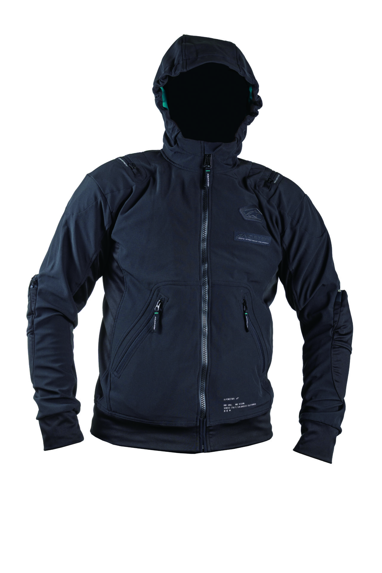 일상 라이딩과 도심 주행에 어울리는 캐주얼 재킷. 심플한 디자인 속에 다양한 디테일을 더했다. 어깨와 팔꿈치의 보호대는 지퍼로 쉽게 탈착할 수 있다. 외피 소재는 방수 멤브레인 가공되어 비를 차단하며 탈착 가능한 보온 조끼로 다양한 기온에 대응할 수 있다. 후드는 라이딩 중 펄럭이지 않도록 고정할 수 있다.