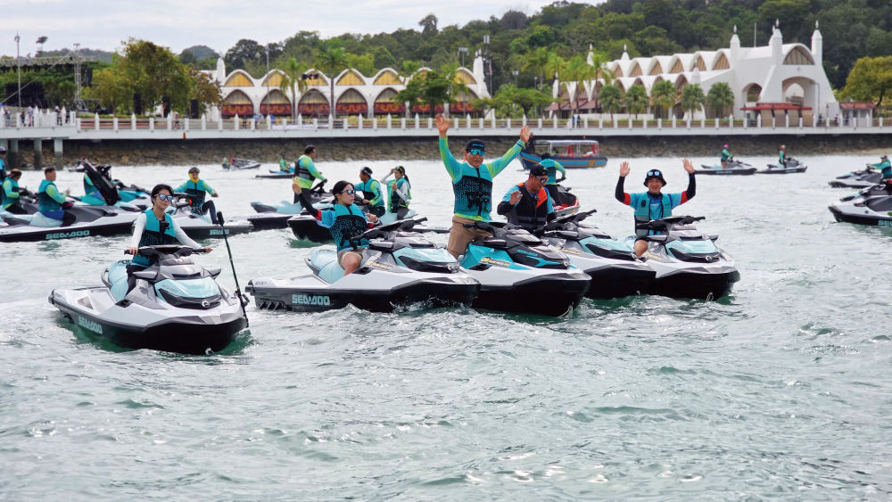 본격적인 행사의 첫날, 수십 대의 Sea-Doo가 바다 위에서 물살을 가르며 출발했다. 참가자들은 랑카위 군도의 크고 작은 섬들을 오가며 섬 사이를 누비는 아일랜드 호핑 투어를 즐겼는데, 그중 하이라이트는 다양분팅 섬(Dayang Bunting Island)이었다. 봉우리가 임산부의 모습을 닮아 ‘임산부의 섬’이라 불리는 이곳은 유네스코 세계지질공원의 일부로, 섬 안쪽의 담수호 Pregnant Maiden Lake에서 참가자들은 수영을 즐기며 자유를 만끽했다. 하얀 모래사장에서의 단체 사진과 에메랄드빛 바다 위를 질주하는 순간은 모두에게 평생 잊지 못할 추억으로 남았다.