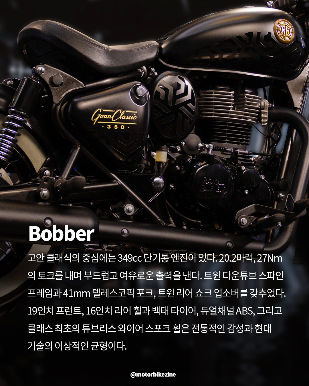MB SPECIAL 클래식에 실린 거침없는 감성, 로얄엔필드 고안 클래식 350 Share FacebookTwitterNaverKakao StoryCopy URL 클래식의 고전미에 바버 스타일의 반항적인 감성을 더한다. 부드럽게 흐르는 라인, 여유로운 자세, 그리고 개성을 드러내는 컬러까지. 고안 클래식 350은 자유를 꿈꾸는 모든 라이더에게 보내는 로얄엔필드의 선물이다. 글 양현용 취재협조 로얄엔필드 코리아 Tags25년11월호고안350고안클래식350로얄엔필드 지난 기사 MB SPECIAL 카본 기술로 확장하는 디자인 브랜드, 팩토리엠... FACTORY M... 더보기 MB SPECIAL 클래식 감성에 트윈의 힘을 더하다, 로얄엔필드... 클래식이란 단지 ... 더보기 MB SPECIAL 글로벌 헬멧 브랜드가 되기까지, HJC의 역사... 도전과 혁... 더보기 MB SPECIAL 세계 커스텀 문화의 중심, 요코하마 핫로드 커... 매년 12월 첫째... 더보기 MB SPECIAL 전기차 배터리 열폭주, 3M이 막는다 전기차 배터리 열... 더보기 이전 기사No. 331 모터바이크 2025년 12월호