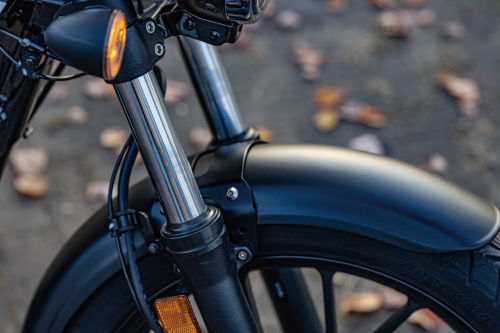 어시스트 & 슬리퍼 클러치는 조작을 한층 편하게 만든다. 가벼운 클러치로 자주 멈추고 출발하는 도심 속 환경에서도 왼손에 부담이 거의 없다. 또한 급격한 시프트다운 시 빠르게 엔진의 회전을 높이지 못하는 롱스트로크 엔진은 슬리퍼 클러치가 역할이 더 고맙다. 변속기는 5단이며, 기본으로 장착된 시소기어 덕분에 부츠의 앞코가 상할 일이 없다는 것도 멋을 중요시하는 라이더에게는 고마운 일이다. 단기통 특유의 토크와 맞물려 느긋하게 단수를 올려가는 재미를 준다. 서스펜션은 전통적인 텔레스코픽 포크와 듀얼 쇼크 조합이다. 스펙은 평범하지만 세팅이 잘 되어 있어 괜찮은 승차감을 만들어준다.
