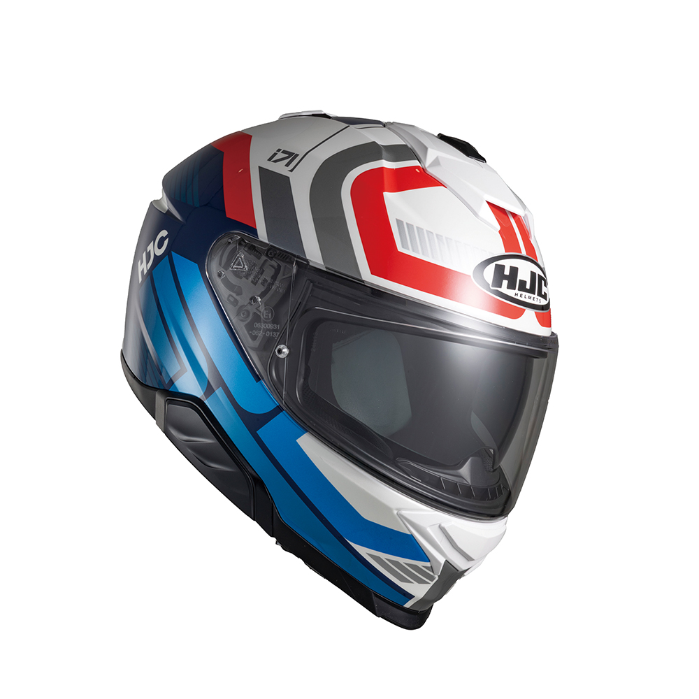 일상 라이딩과 출퇴근에 어울리는 HJC의 미드레인지 풀페이스 헬멧. 화이트와 레드, 블루 컬러의 조합이 스포티한 분위기를 낸다. 위치 조절이 가능한 다크스모크 선바이저와 와이드 실드가 적용되었으며, 최신 핀락이 포함되어 있다. 2세대 스마트 HJC 블루투스에 대응한다. 사이즈는 M부터 2XL까지.