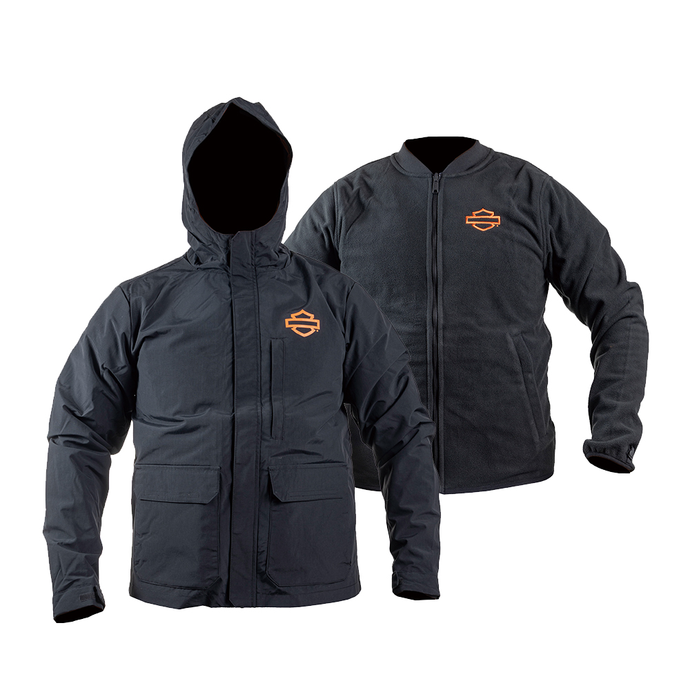 방풍 성능과 방수 처리되어 다양한 날씨에도 끄떡없는 테크 재킷. 외부 재킷은 높은 방수 성능을 가진 립스탑 소재와 방수심실링 처리로 생활 방수에도 대응 가능하며 분리되는 내부 재킷은 기모 소재로 방풍 성능을 가진다. 두가지 재킷을 상황에 함께 또는 따로 착용할 수 있어 활용도가 높다.