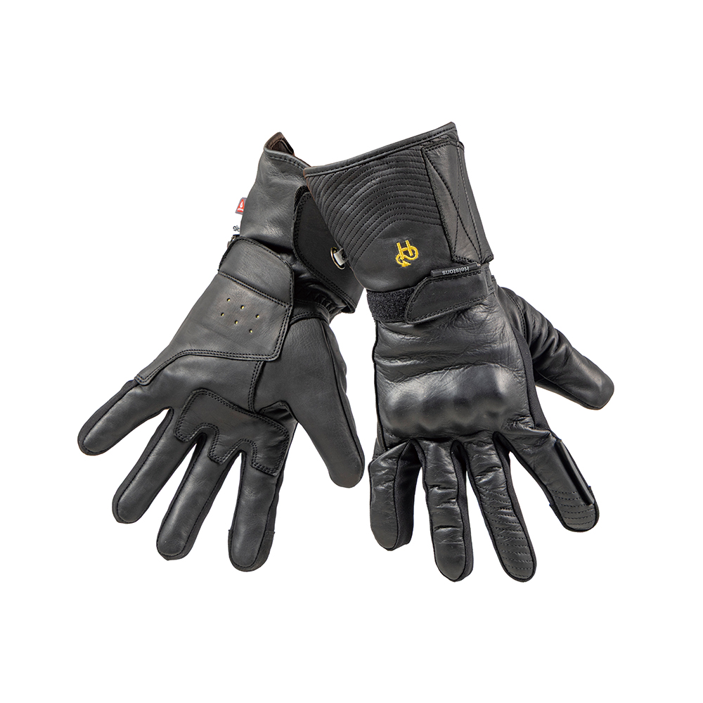 풀그레인 염소 가죽으로 제작된 겨울용 글러브. 롱글러브 디자인으로 고급스러운 올블랙 컬러에 로고 자수가 포인트가 된다. 헬스톤스의 장점인 클래식한 디자인과 보호 성능이 잘 드러난 제품으로 카본 쉘소재의 너클 보호대와 손바닥부분은 케블라로 보강되었다. 방수 처리되어 궂은 날씨에도 대응된다.