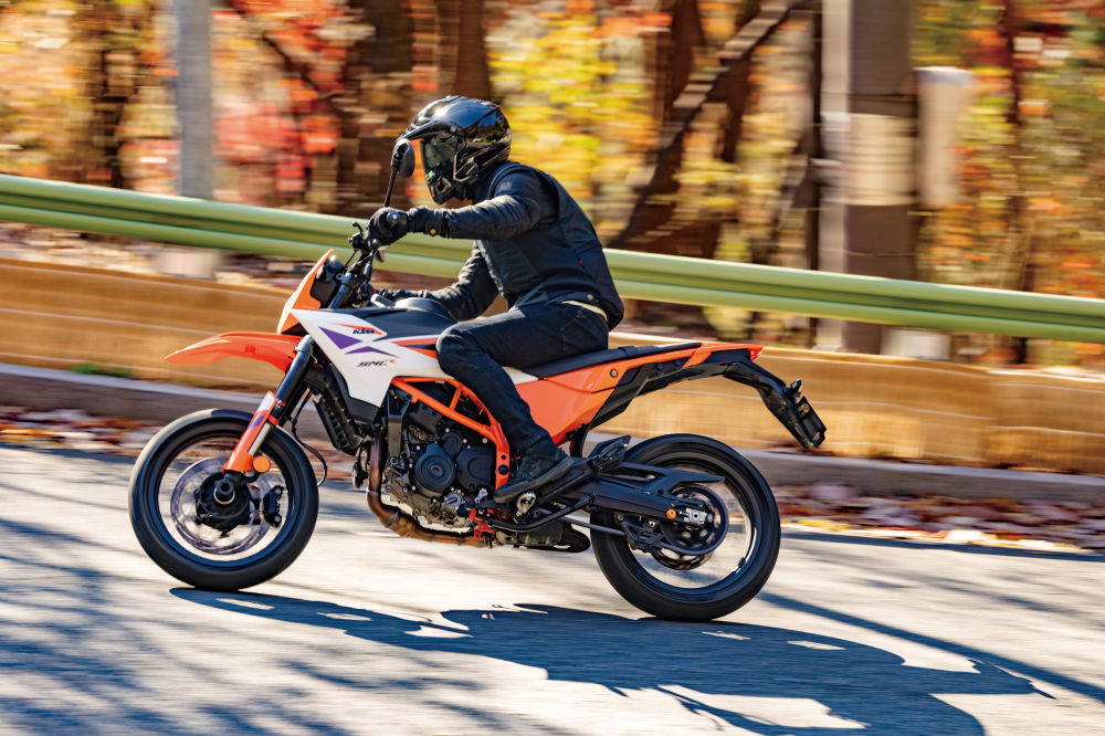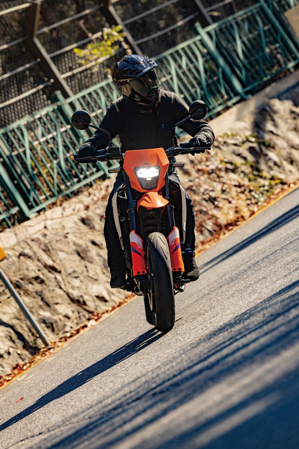 꼭 필요한 정보만 전달하는 4.2인치 TFT 계기반, LED 헤드라이트, 엔듀로 스타일 랠리 시트 등 기본 편의 장비를 세련된 스타일로 녹여냈다. 스마트키가 아니라는 점도 서킷 주행에서 큰 이점으로 작용한다. 390 SMC R은 기존 KTM 390 시리즈(듀크)와는 완전히 다른 차원의 모터사이클이다. 쿼터급의 모터사이클이 아니라 최고의 재미를 추구하는 과정에서 작고 가벼운 시스템 방향을 선택한 것으로 풀이된다. 단언컨대 이 모터사이클은 지난 15년간 내가 경험했던 모든 KTM 중에서 가장 명확한 컨셉을 가졌다. 무대가 어디든 최고의 라이딩 재미를 선사하기 위한 모델. 분명 소형 슈퍼모타드 시장의 새로운 붐을 일으킬 비장의 무기다.