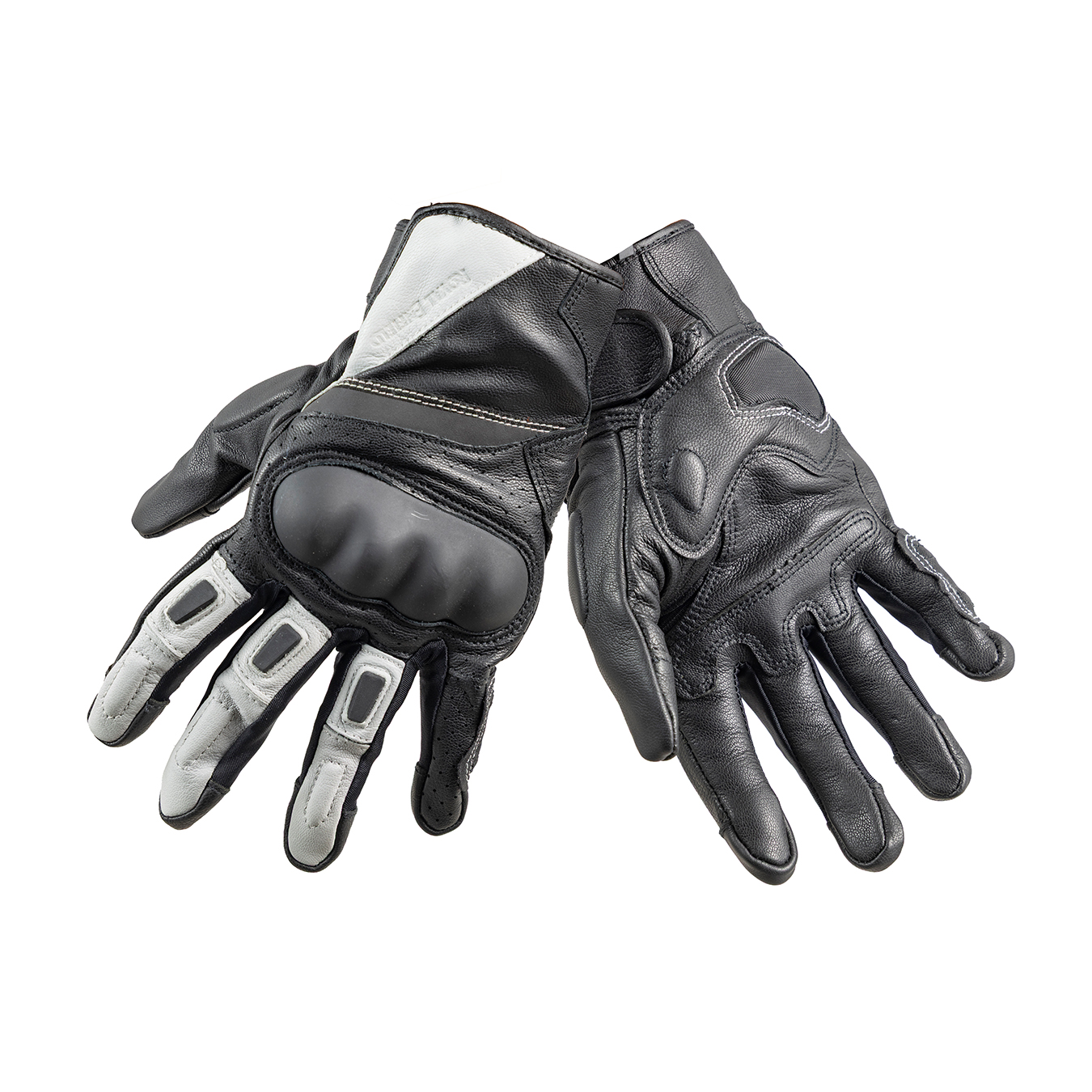블랙&화이트의 깔끔한 컬러 조합이 돋보이는 라이딩 장갑. 내구성 높은 염소 가죽 소재에 손등 부분은 천공 처리되어 통기성 고려했다. 스로틀 조작 부분에는 이중으로 보강하여 그립감을 높였다. CE 레벨1의 너클 보호대가 적용되어 있으며 스마트 터치를 지원한다.