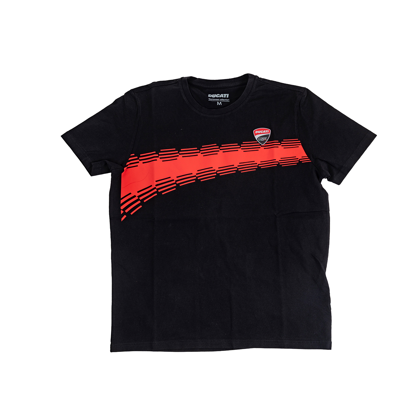 두카티 코르세의 레이싱 스피릿을 담은 캐주얼 티셔츠. 모토GP 두카티 팩토리팀에서 영감을 받은 강렬한 네온 레드 컬러의 곡선 그래픽이 특징이다. 수축 방지 및 부드럽게 가공 처리된 100% 면소재로 레귤러 핏.
