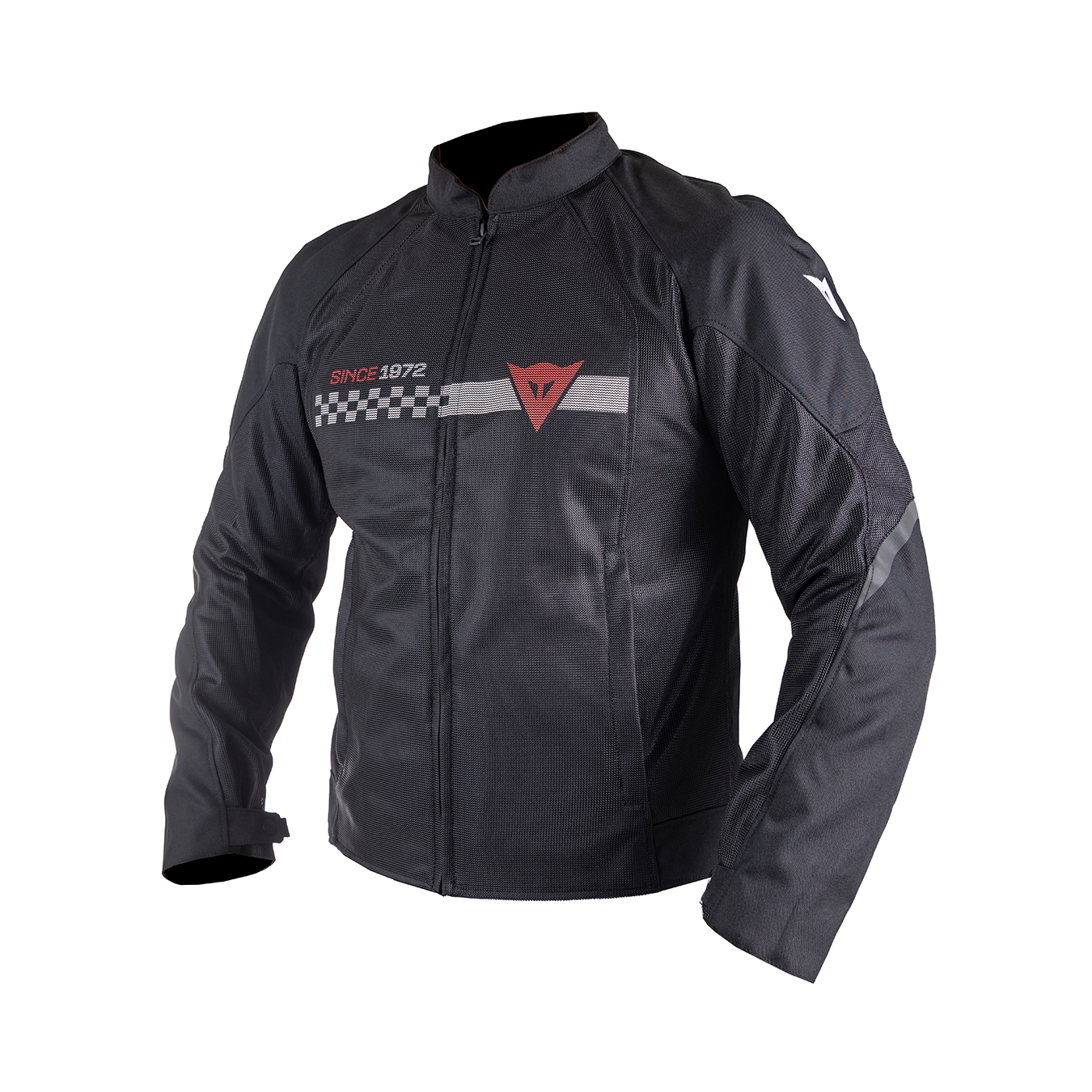 재킷의 전면과 후면 모두 메시로 처리되어 통기성을 높인 제품이다. 체크 패턴과 데몬 로고의 조화로 클래식하면서도 스포티한 분위기를 살렸다. 어깨와 팔꿈치 부분에는 부드러운 소재의 레벨1 등급 프로 아머 보호대가 적용되었다. 보호 성능을 높이기 위해 가슴과 등 보호대를 추가할 수 있다.