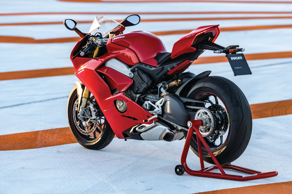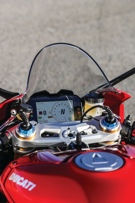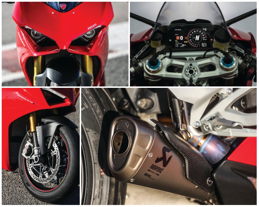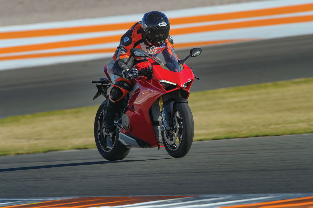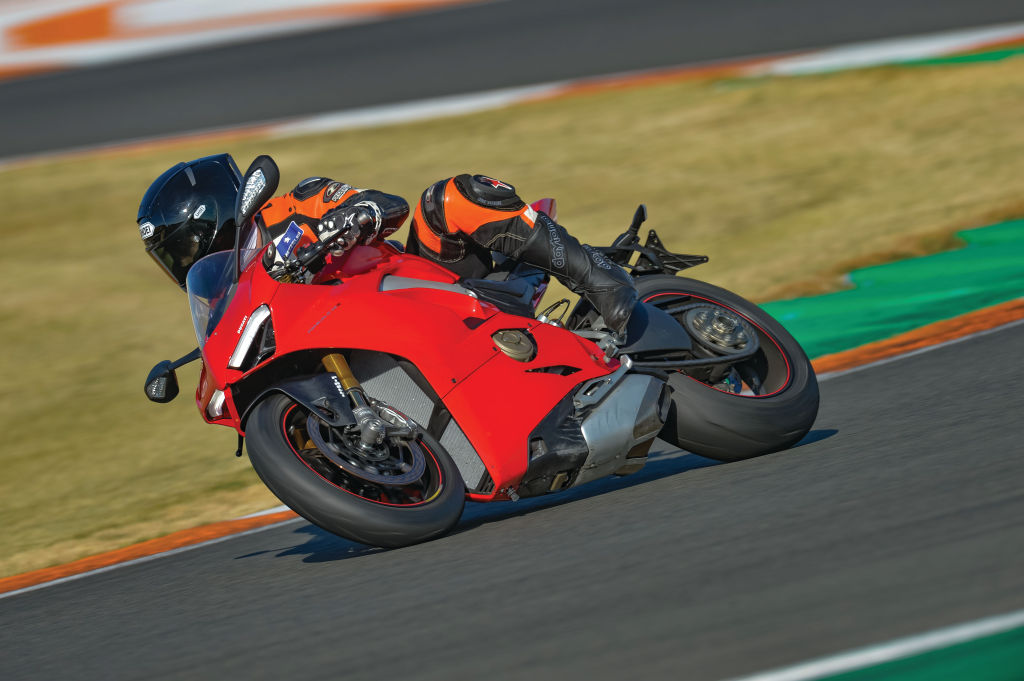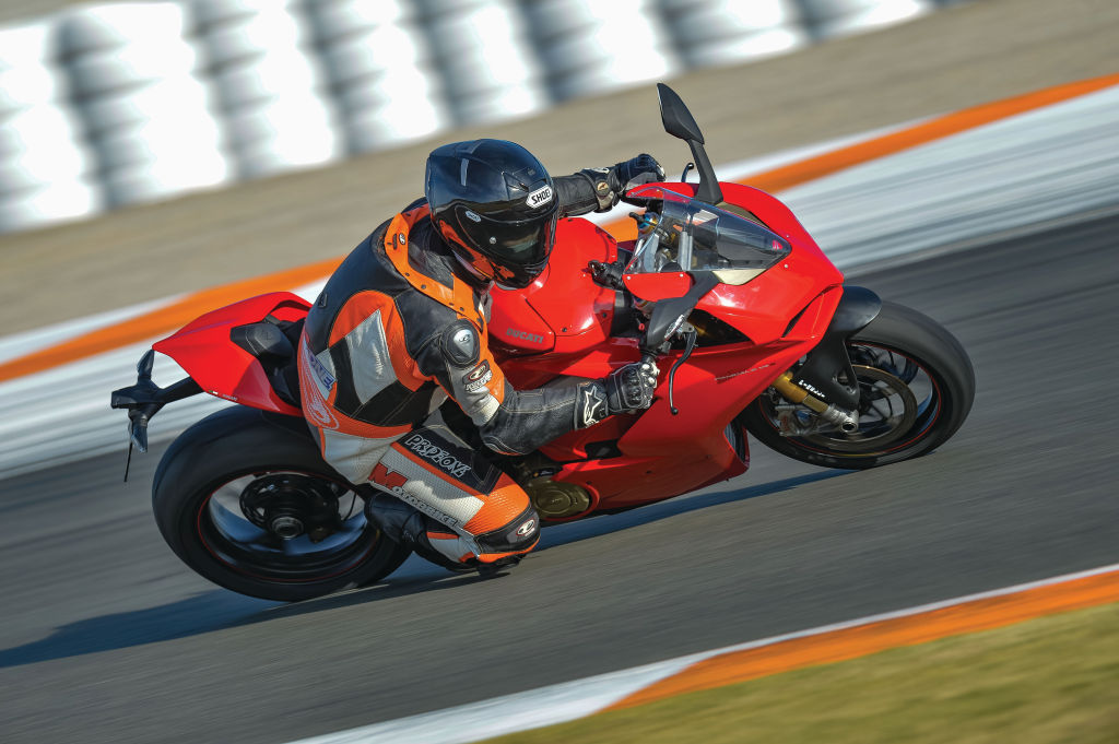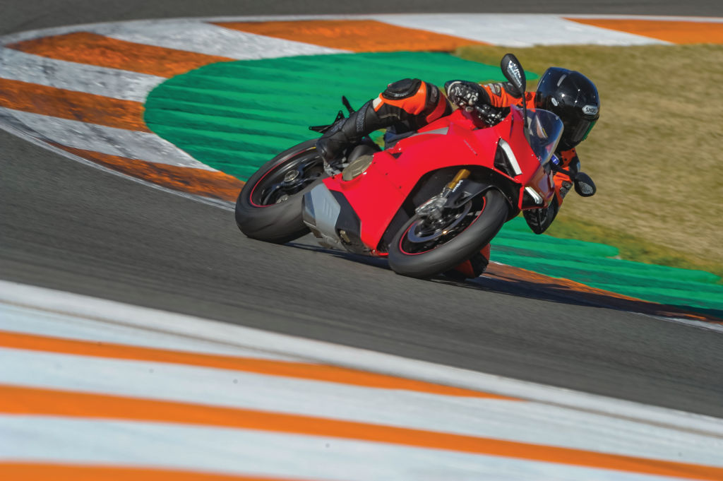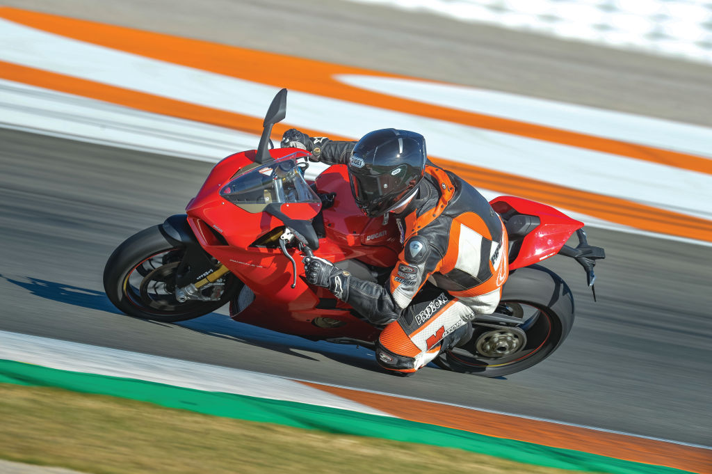 발렌시아 서킷의 메인 스트레이트가 시작되는 부분의 노면이 고르지 못해 프런트가 들썩이지만 윌리 컨트롤이 개입하며 최대 가속을 유지한다. 214마력을 풀스로틀 한다는 것은 모토GP 선수나 경험할 수 있던 것이지만 이제 파니갈레 V4에 오르면 누구나 가능한 일이 되었다.