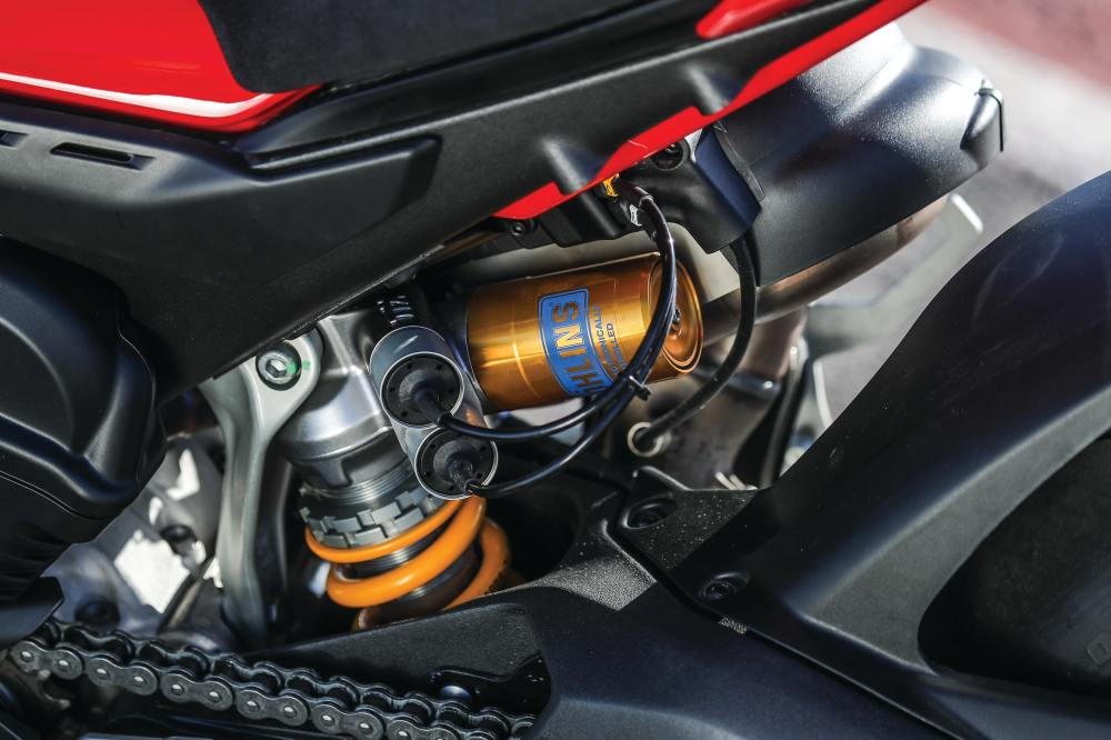 압도적인 브레이크 성능도 돋보인다. 브레이크가 성공적으로 작동하기 위해서는 브레이크 디스크와 캘리퍼의 절대 성능에 타이어의 그립과 그 타이어를 노면에 제대로 비벼주는 서스펜션의 삼박자가 필요한데 이 모든 요소를 완벽하게 갖추었으니 당연하다. 더 강력해진 신형 캘리퍼는 330mm 초대형 디스크를 물었고 올린즈 스마트 EC 전자식 서스펜션은 1초에 100번 댐핑을 바꿔가며 새로운 피렐리 슈퍼코르사SP 타이어를 노면에 밀착시켜준다. 덕분에 풀브레이킹을 하면 정말 아찔한 감속G를 느낄 수 있다.