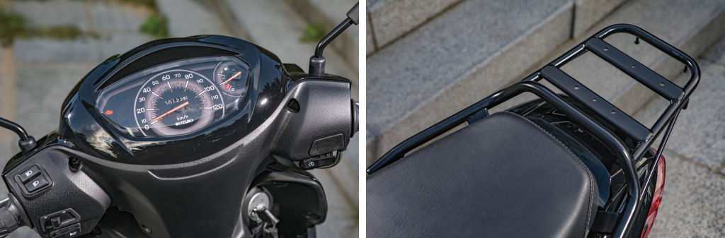 리어의 캐리어는 이 추론에 힘을 더해준다. 캐리어를 달았다는 건 활용성에 큰 목적을 뒀다는 증거다. 사실 어드레스는 예전에도 캐리어를 달고 있었다. 경쾌한 주행감각으로 스프린터의 이미지가 생긴 것일 뿐 어드레스의 태생은 다용도 경량 스쿠터였다. 이전 세대의 어드레스들이 승용과 상용 사이에서 고민했다면 이번엔 결심을 했다. 차체가 커지며 얻은 공간을 짐을 싣기에 편리하게 구성했다.