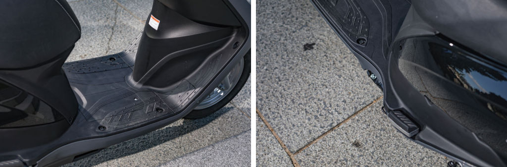 250mm의 평평한 발판은 작은 박스를 운반하는데 요긴하다. 656mm의 긴 시트 역시 마찬가지다. 운전자가 편하게 자리를 잡고도 충분한 공간이 남는다. 평평하고 넓은 사각형 모양의 탠덤 좌석은 리어의 캐리어와 높이가 비슷해 추가로 짐을 적재하거나 긴 짐을 싣기 좋아 보인다. 리어 캐리어 역시 사용을 염두에 두고 보니 만족스럽다. 메인스탠드를 세우며 잡아봤을 때 삐걱거림 없는 단단함이 느껴진다. 끈을 묶기 위한 고리도 있고 탑 케이스 브래킷을 장착할 수 있도록 구멍을 뚫어놓은 세심함도 보인다.