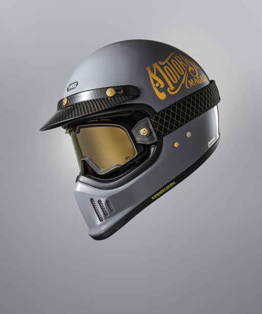 그레이 컬러를 바탕으로 나만의 스타일로 꾸며보았다. 쉴드는 투명한 순정 대신 야간주행에 좋은 노란색 렌즈로 교체해서 낮에는 고글을 밤에는 쉴드를 사용할 예정이다. 고글은 100%고글과 RSD가 협업한 제품에 바이저는 길이가 긴 쇼에이 순정 대신 짧고 가벼운 헤돈의 카본 바이저를 달았다. 그리고 전체적인 콘셉트에 어울리도록 골드 크롬컬러로 ‘모터바이크‘의 클래식 버전 로고를 더해주었다. 그렇게 간단하지만 나만의 헬멧이 탄생했다. 이처럼 조합에 따라 다양한 스타일을 연출할 수 있다는 점도 EX제로의 큰 장점이다.